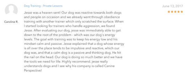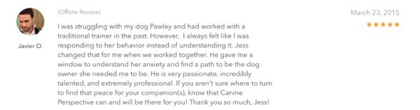 Want to see what past clients have to say about Canine Perspective? Here are all the written